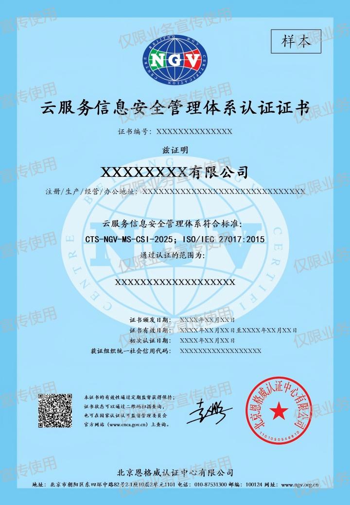 CTS-NGV-MS-CSI-2025 《云服務(wù)信息安全管理體系 基本要求》和ISO/IEC 27017:2015《信息技術(shù)-安全技術(shù) 基于ISO/IEC 27002云服務(wù)信息安全控制的實(shí)用規(guī)則》